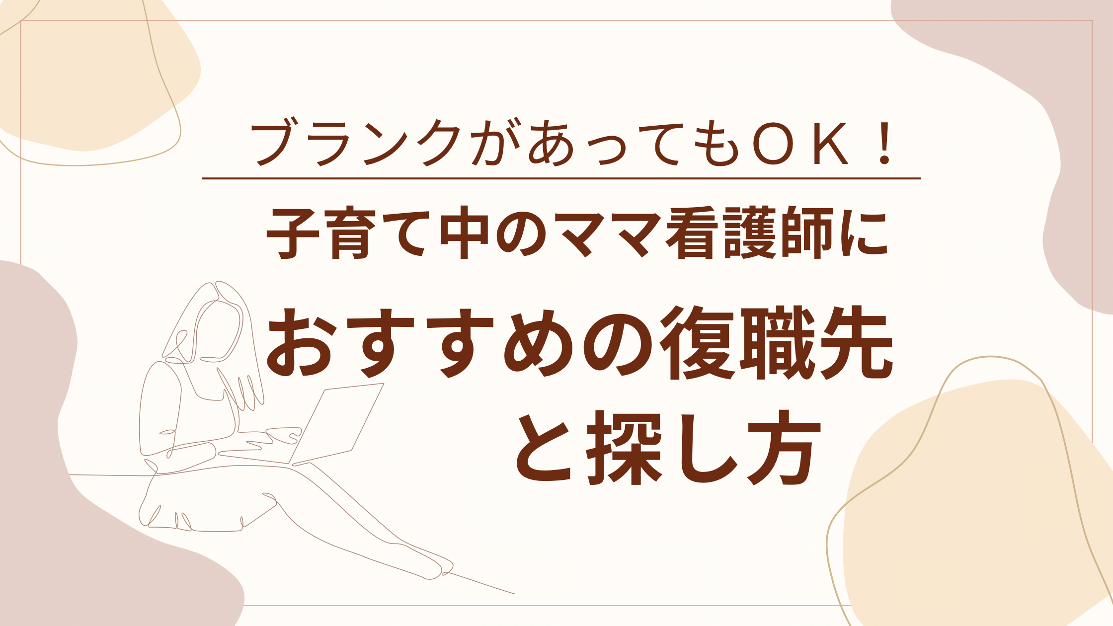 転職ノウハウ 3児ママナースのおすすめ!子育てしやすい職場5選 日々看護師と子育てを頑張るママナースさんへ、3児のママナースおすすめの子育てしやすい職場5選とその選び方についてご紹介します。 2025.03.30 転職ノウハウ