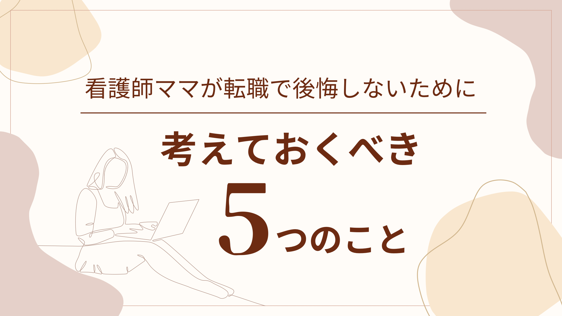 転職ノウハウ 看護師ママが転職で後悔しないために考えておくべき5つのこと 「転職、失敗したかも…」と感じる前に子育てと仕事の両立を目指して転職したのに、「想像と違った…」「こんなはずじゃなかった」と感じたことはありませんか?実は、子育て中のママ看護師の多くが「転職後に後悔し... 2025.07.19 転職ノウハウ